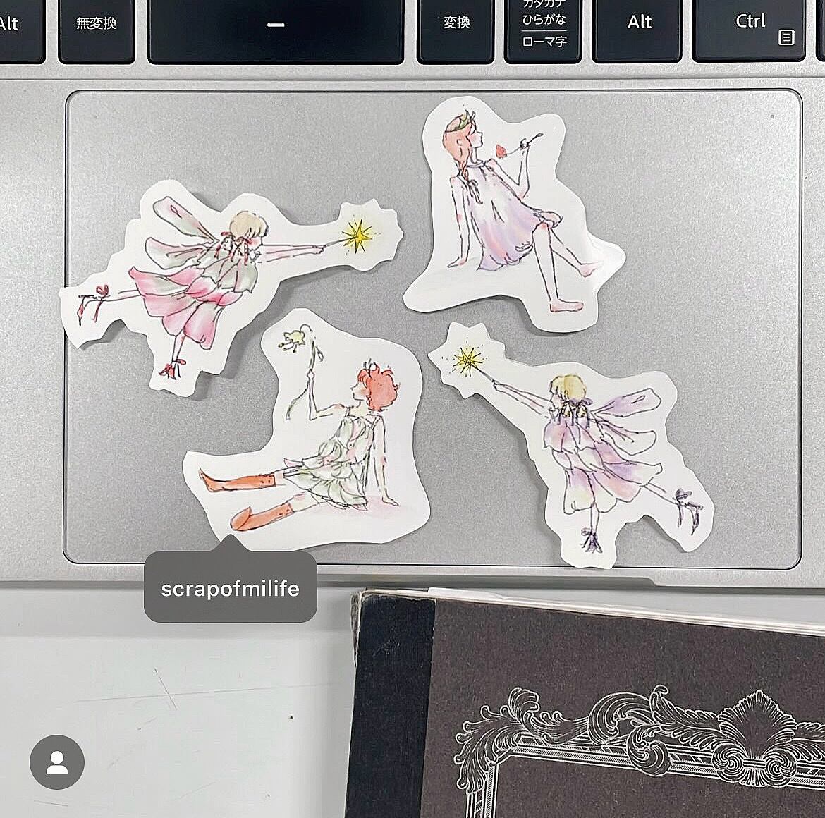 お花のドレスを着た妖精たちを描いた絵をシールにしました。